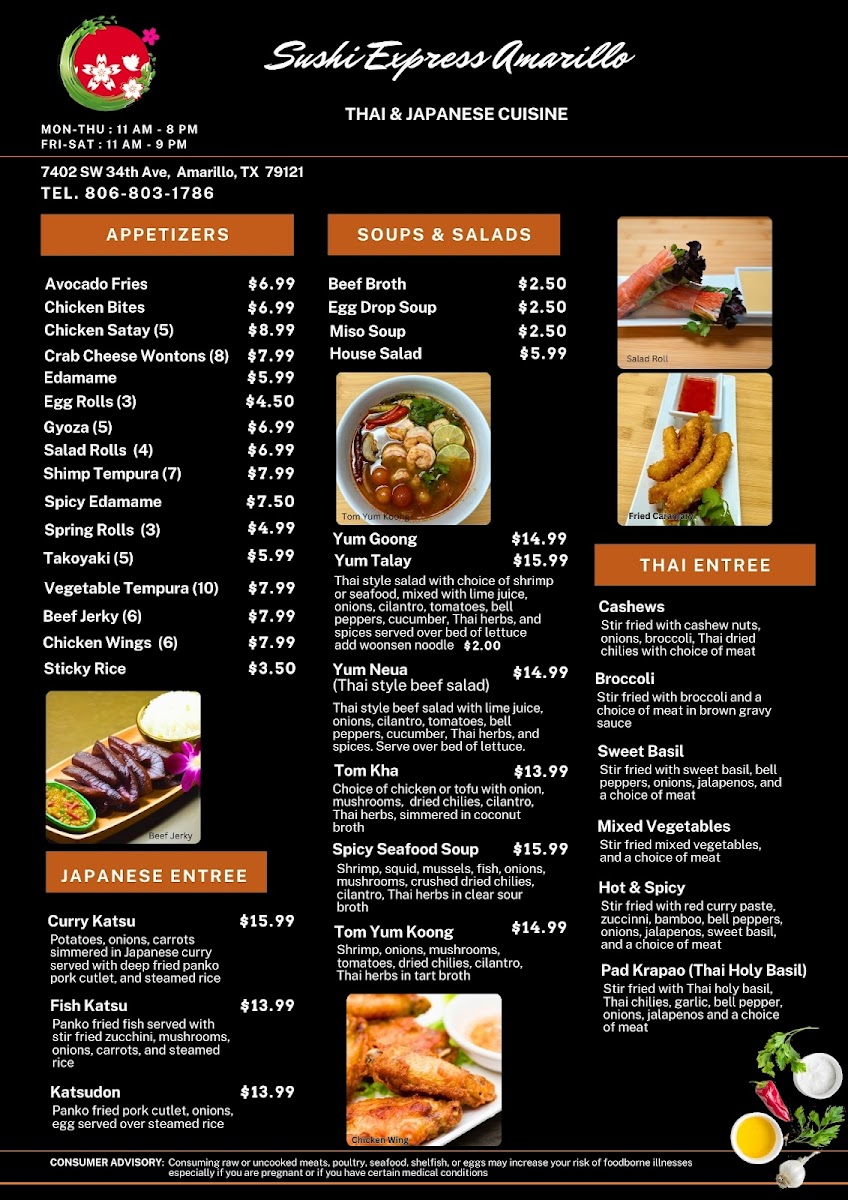 With rave reviews about their stunning presentations and exceptional service, Sushi Express Amarillo is truly a destination for food lovers.